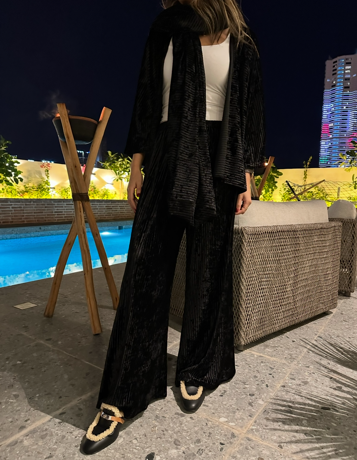 ~ Oversized Scarf + cardigan + Wide leg Pants